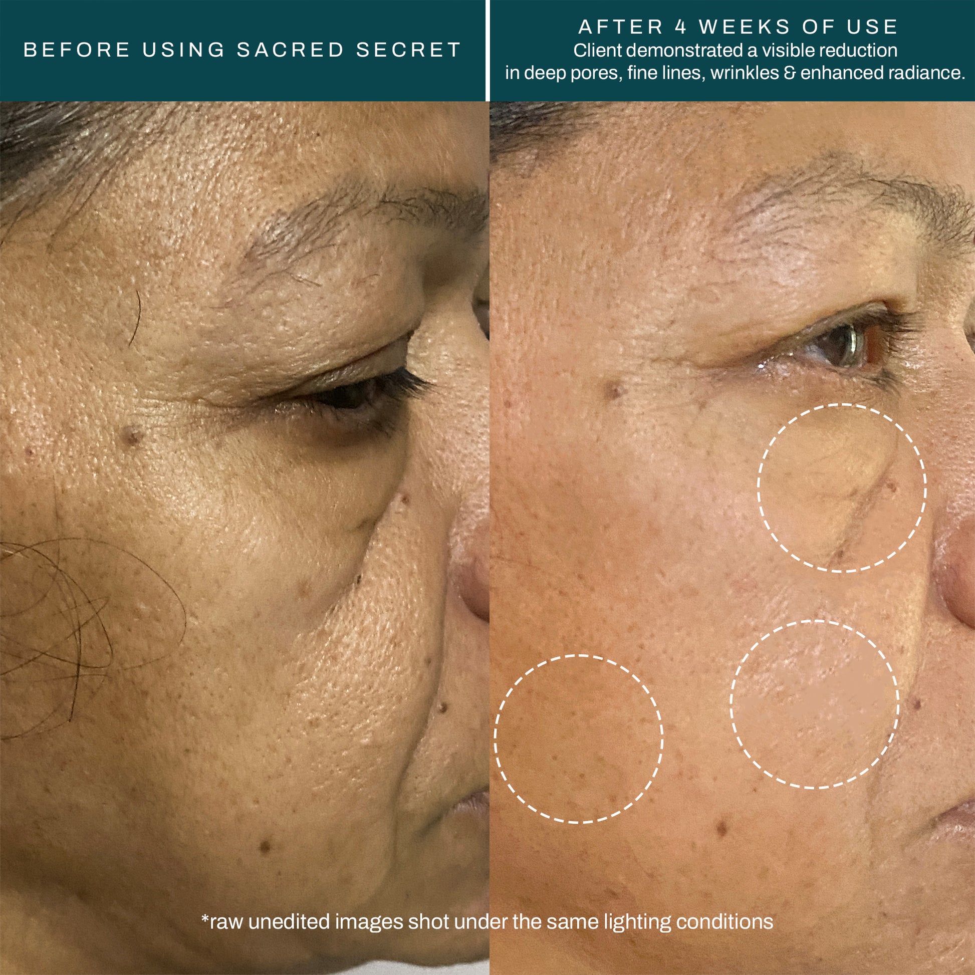• Dark Spot Diminishment: Sacred Secret is your dedicated companion in the journey to a more even skin tone. It effectively targets and reduces dark spots, promoting a harmonious and balanced complexion.
