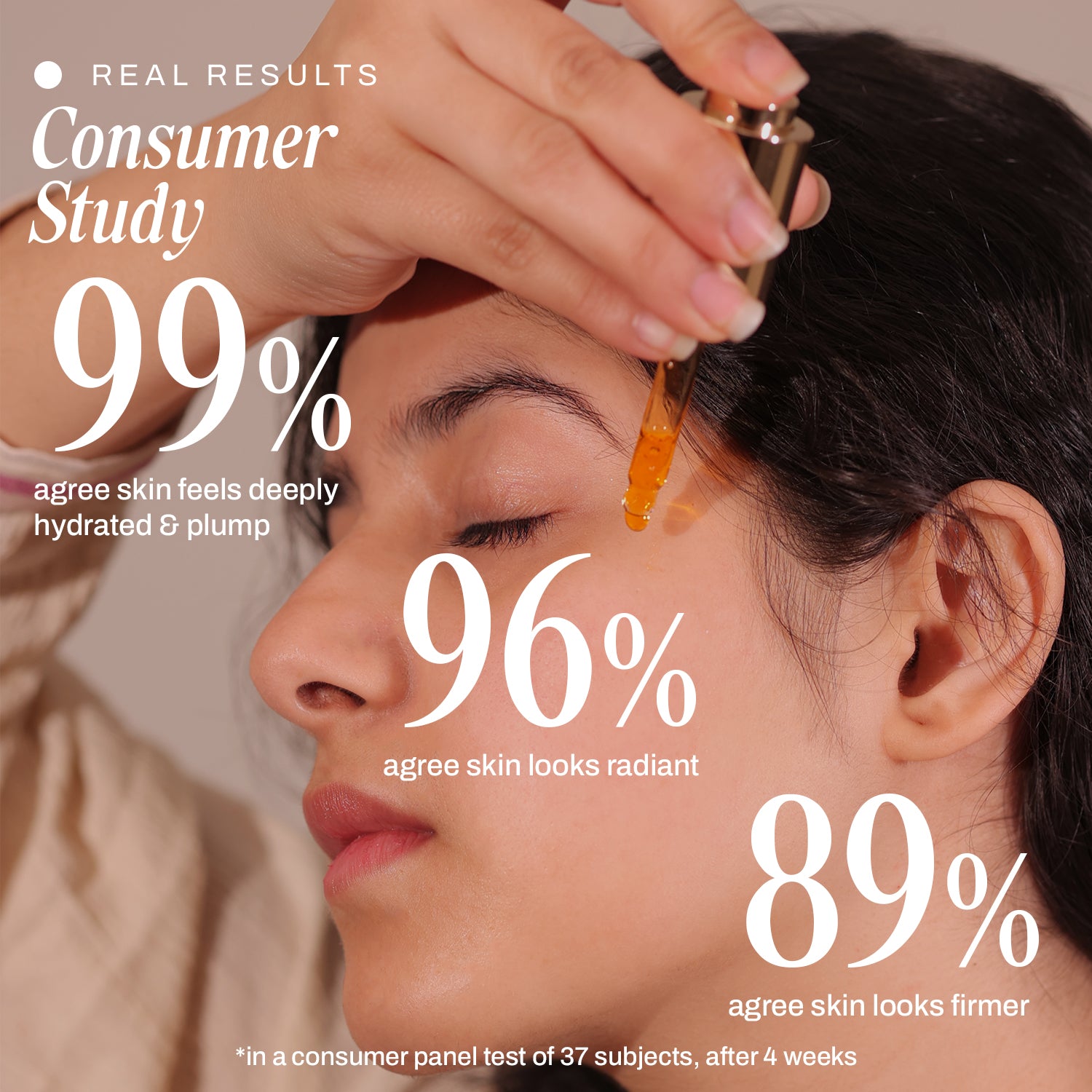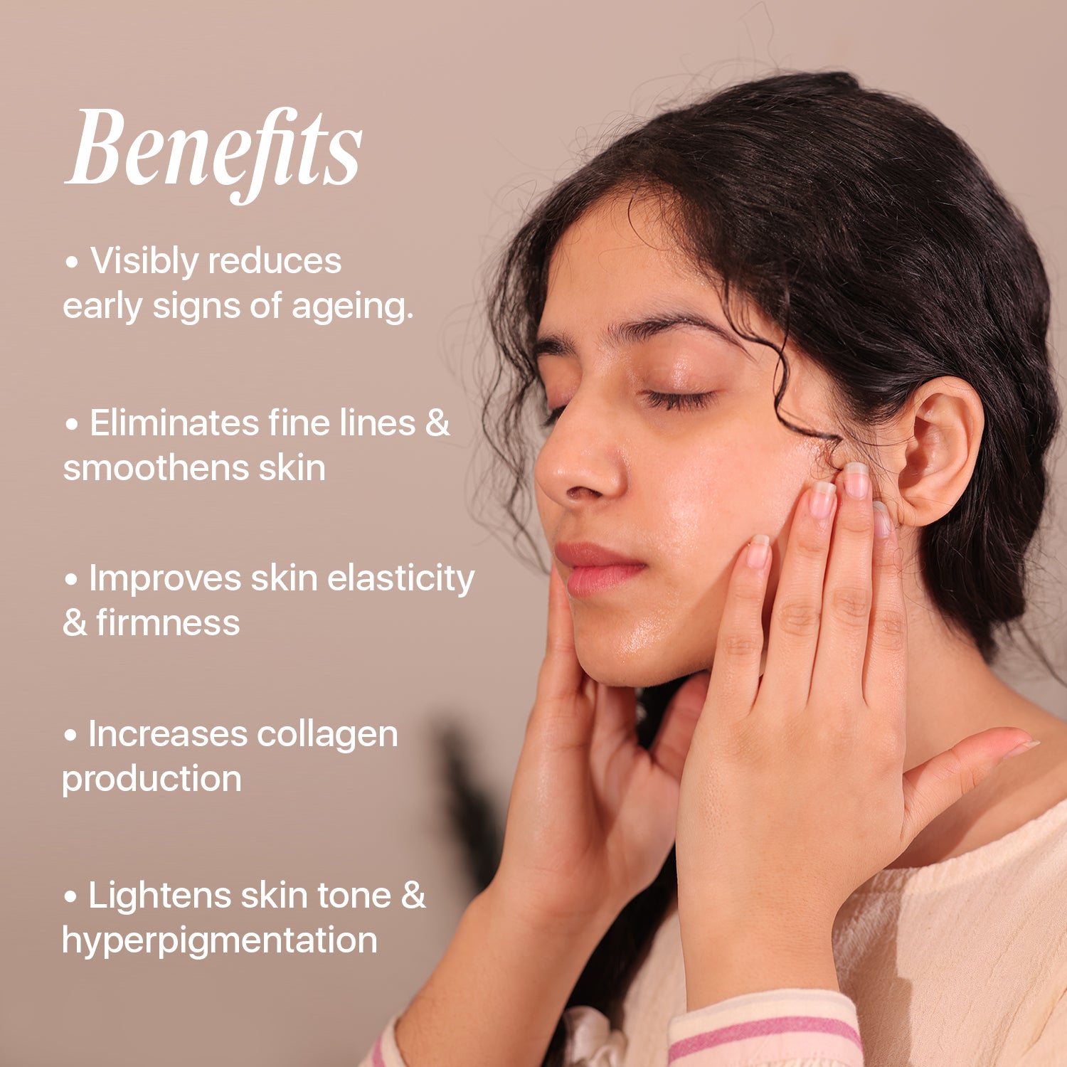 Our formula is meticulously crafted to be super light and super absorbent, ensuring a non-sticky, oil-free application. Glide it on and feel the magic of a luxurious, weightless serum. A fusion of tradition and innovation, it's a skincare revelation that unveils your skin's natural brilliance.